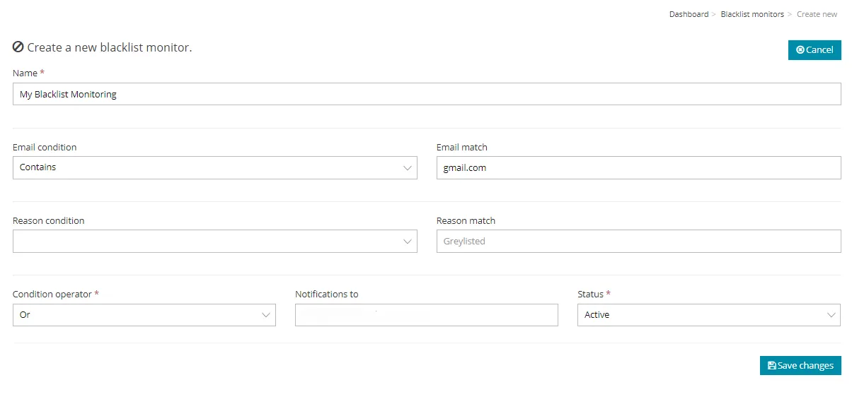 If you want a notification on an addition of a @gmail.com ID in your blacklist, so you can use this option for that.
