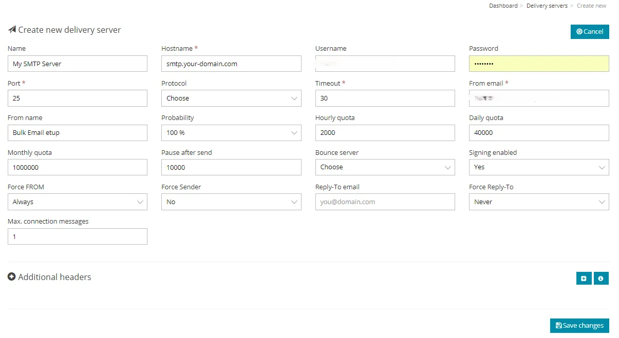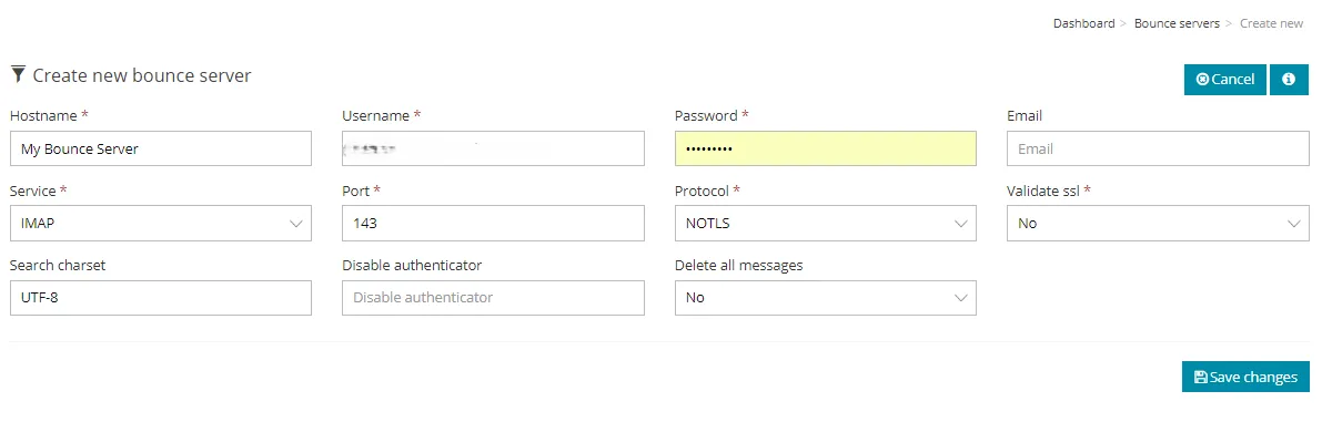 We will configure your bounce email server as well here for each SMTP server and add them to their respective email SMTP server for bounce processing.