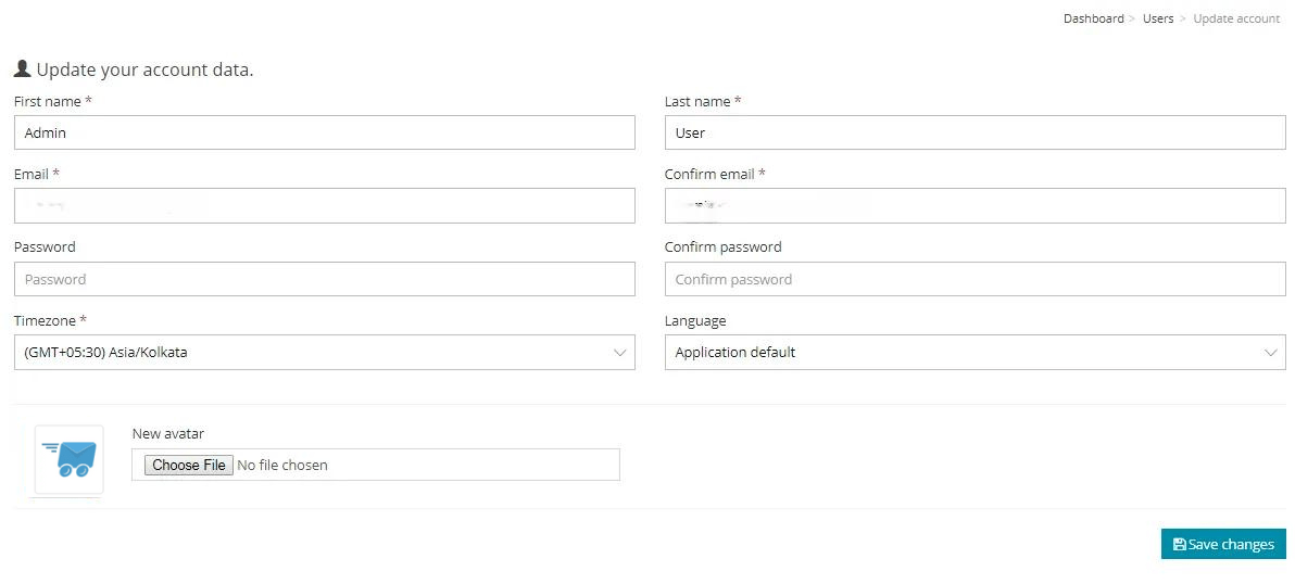 Profile tab – Includes First name, Last name, Email, Password, Timezone, Language and a Browse button so that you can upload an image of yourself. You must use your email address and assigned password that matches your email password.
